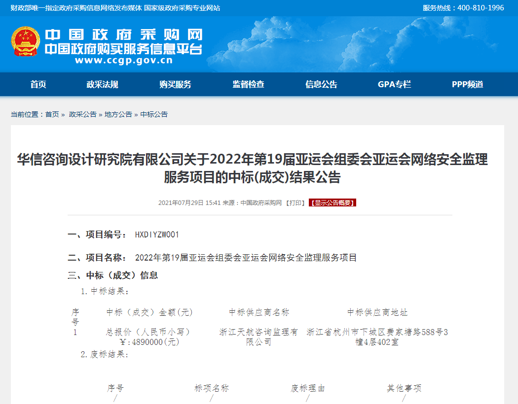 20周年慶再添新喝彩——浙江天航咨詢(xún)監(jiān)理有限公司喜中杭州2022年第19屆亞運(yùn)會(huì)網(wǎng)絡(luò)安全監(jiān)理服務(wù)項(xiàng)目