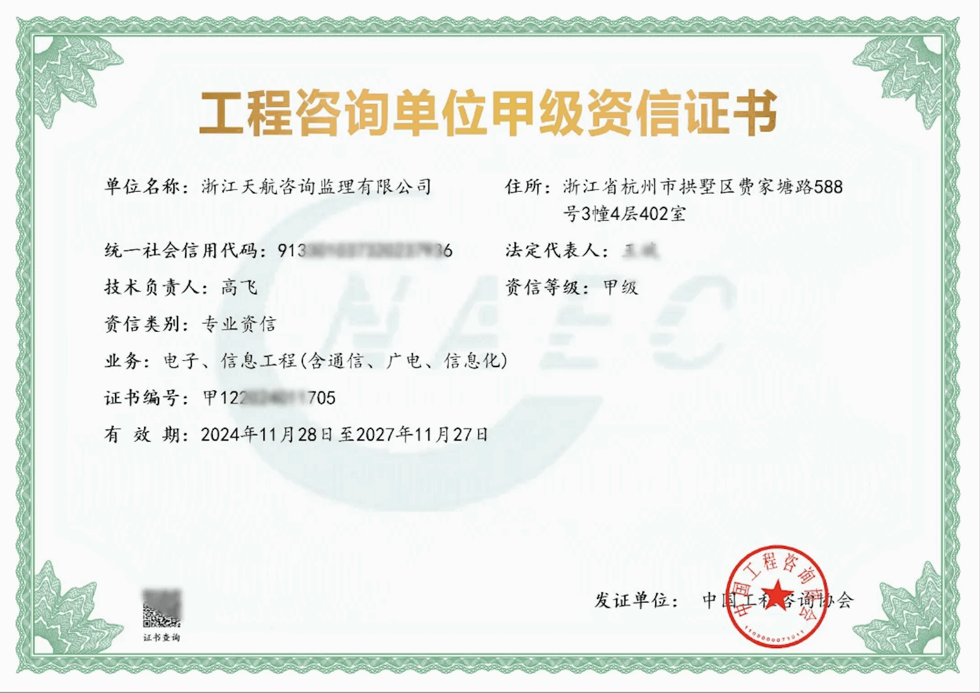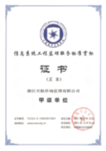 信息系統(tǒng)工程監(jiān)理 甲級證書