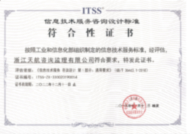 ITSS信息技術(shù)服務(wù)咨詢設(shè)計標(biāo)準(zhǔn) 符合性證書