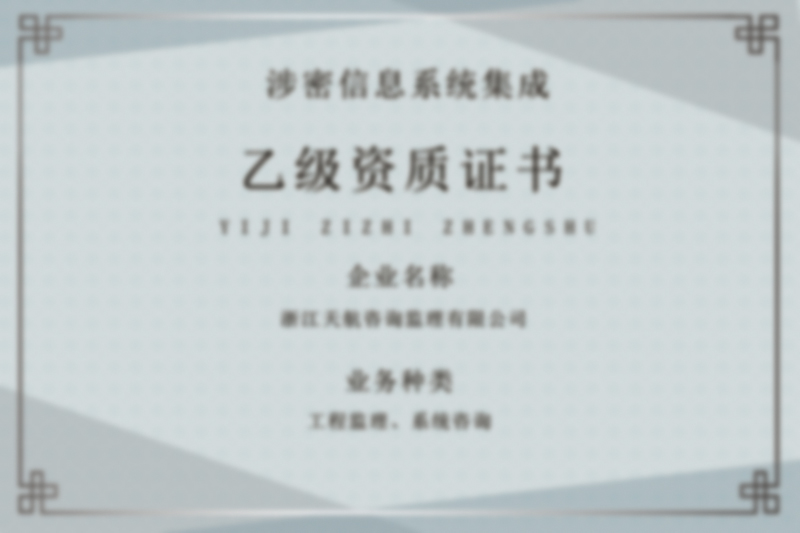 涉密信息系統(tǒng)集成乙級資質(zhì)證書
