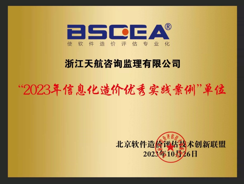 浙江唯一 ‖ 浙江天航獲評《2023年信息化造價優(yōu)秀實踐案例》單位
