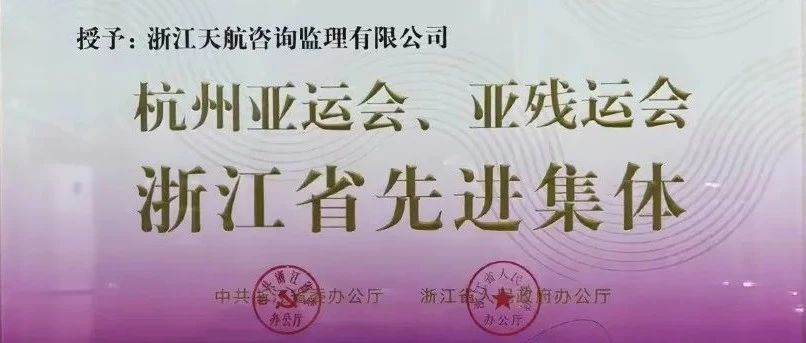 喜報|浙江天航榮獲杭州亞運會、亞殘運會浙江省先進集體榮譽稱號!
